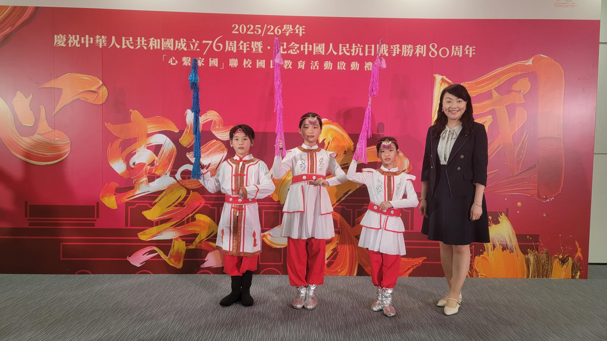 本校參與了2025年10月15日於伊利沙伯體育館舉辦「慶祝中華人民共和國成立七十六周年暨紀念中國人民抗日戰爭勝利80周年『心繫家國』聯校國民教育活動啟動禮」的粵劇《香江之珠》聯校表演,粵劇共分了三場,本校學生負責第一場馬隊角色。同學在綵排中認真練習,勤力地背唱粵曲,當天演出成功,獲得在場的觀眾讚賞。