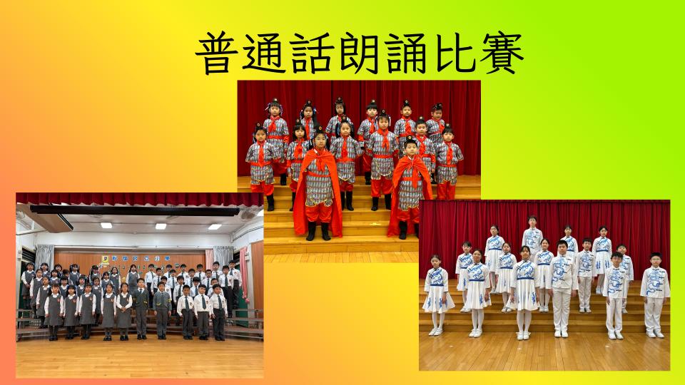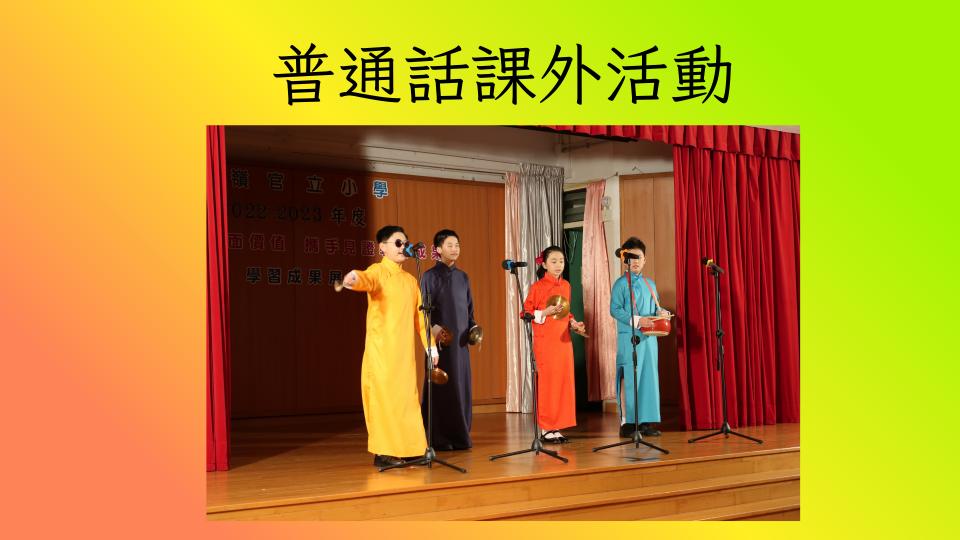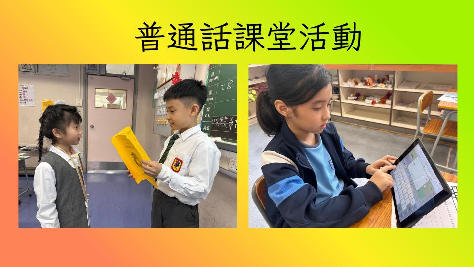 安排學生參與校內外普通話活動,包括普通話劇場、朗誦比賽、繞口令比賽等,讓學生在真實情境中學習及應用普通話。 |